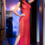 Rotes, langes Kleid aus transparenter Spitze mit sexy Seitenschlitz. Inklusive passenden String.